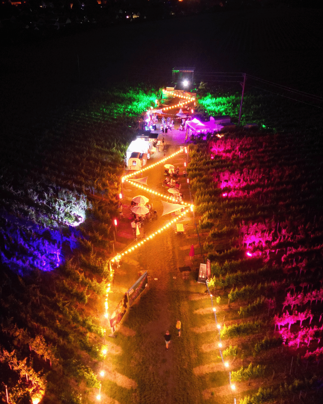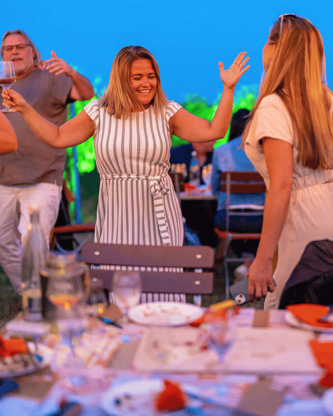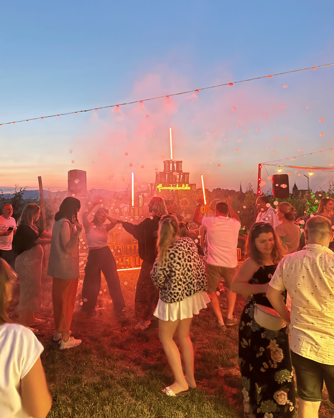 Ab 21 Uhr wird gefeiert – mit Drinks von der Cocktailbar und Tanz unter funkelnden Lichtern mitten im Weinberg. 💃🥂